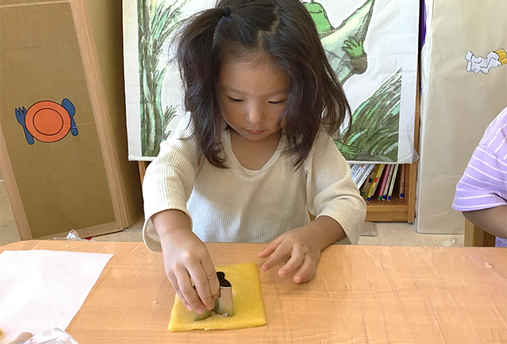園の大きな窓からは、青い空や流れる雲、しとしと降る雨、