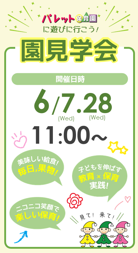 上記日程で都合のつかない方はお気軽に園へお電話ください。お待ちしております♪