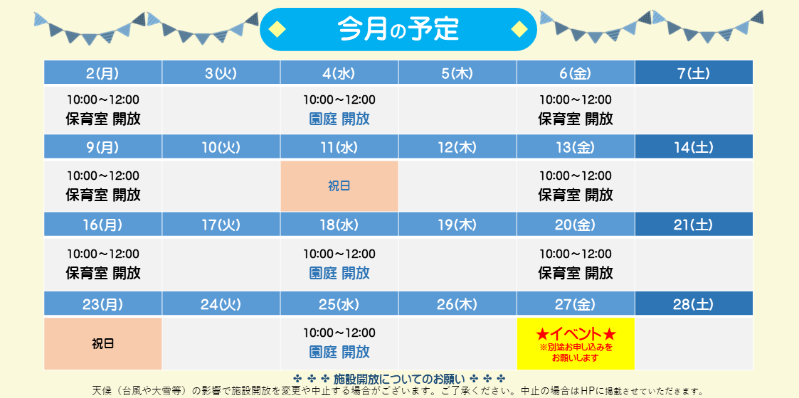 園庭開放と保育室開放は申し込みは必要ありません!いつでも遊びに来てくださいね♪