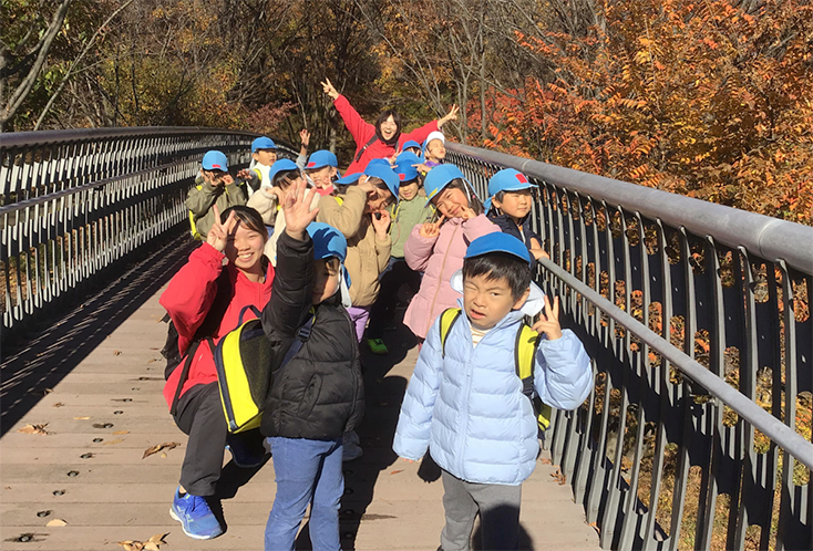園外へお散歩に出かけ季節の移り変わりを感じたり、