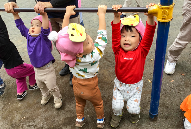 「みてみて~」ぶらさがるの上手でしょう?「1,2,3~」