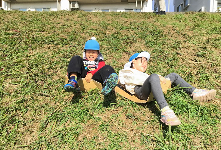 お友だちと何度も滑って遊びました。バランスもうまくとれるようになった!