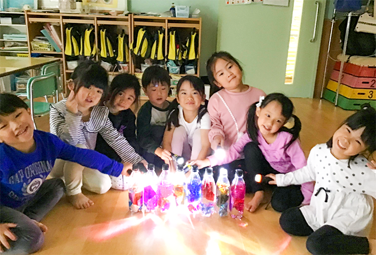 セロファンやホログラムに光を当てると反射してキレイでした!
