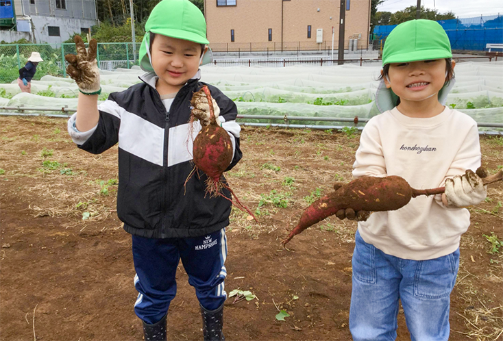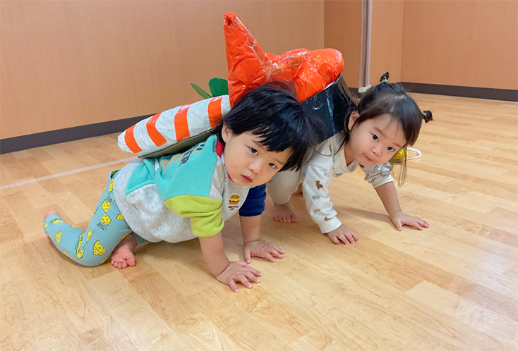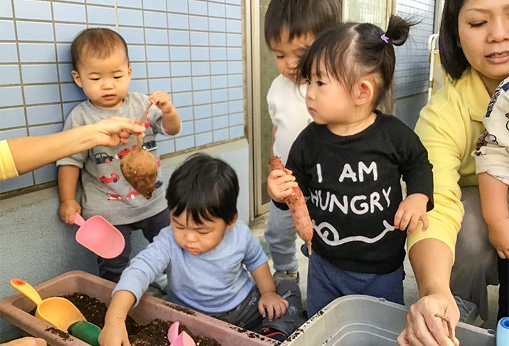 お芋ほりごっこをしました!大きなお芋がもっと大きく見えますね♪
