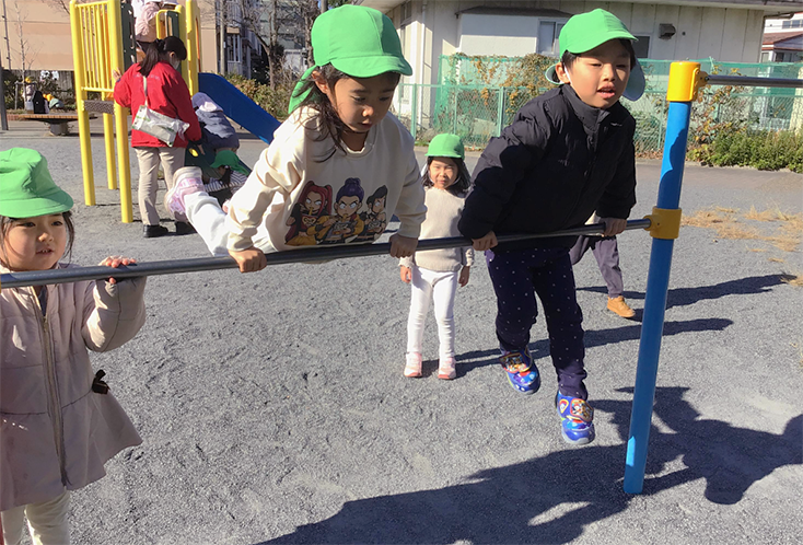 園庭では砂遊び・鉄棒・プール遊びなど毎日楽しく過ごしています。